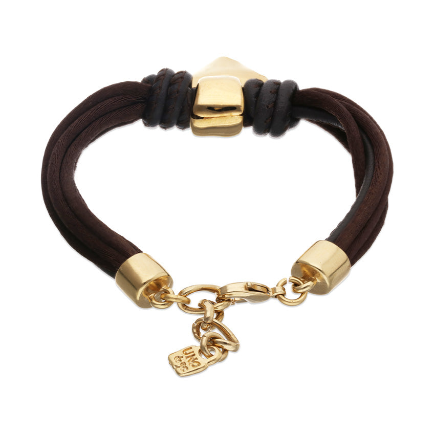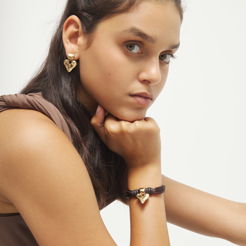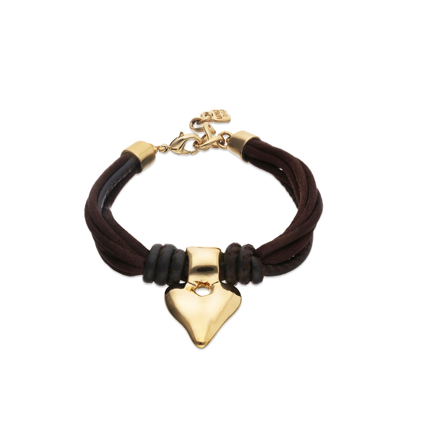 Regular price $323.00Be kind hearted. The Beat Thread Bracelet features a mix of brown leather and silken thread with a 18ct gold plated alloy heart.