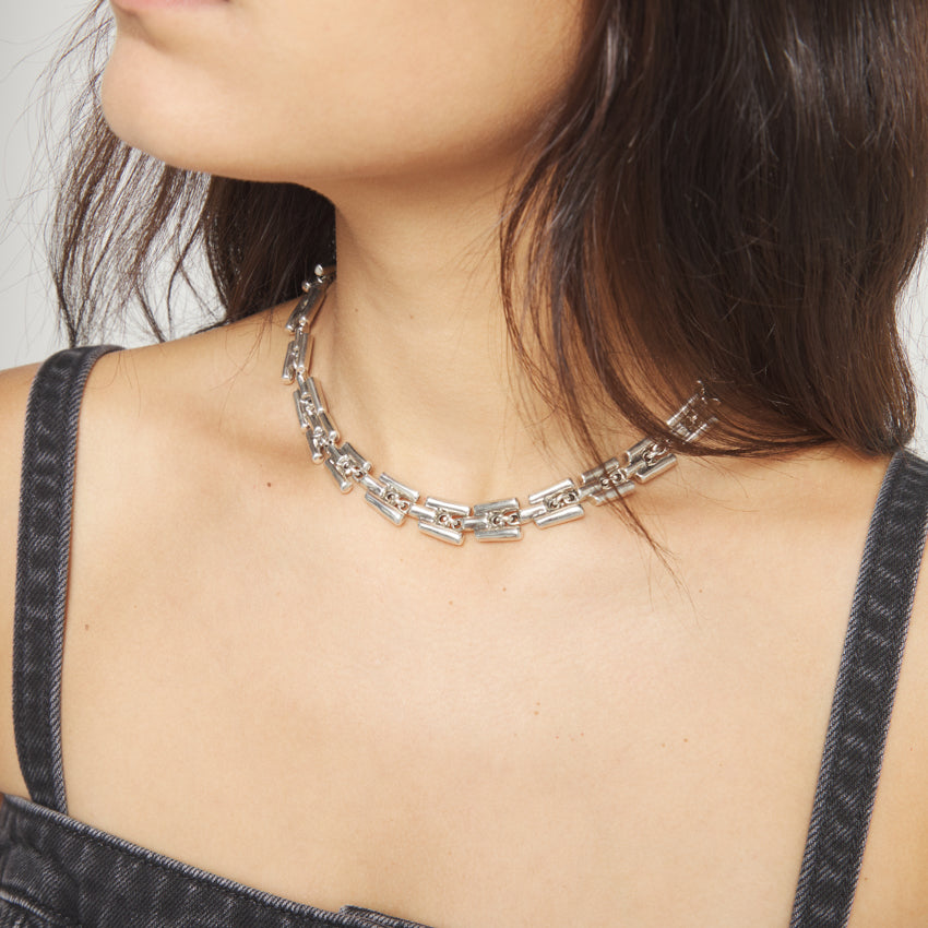Regular price $654.00The Origins of life were built link by link. The Origin necklace features unique organic styled links in sterling silver plated alloy.