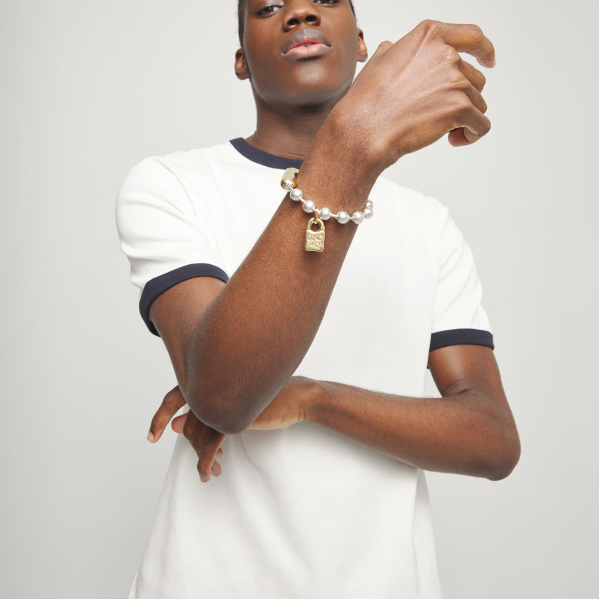 Bold ball bracelet in silver plated alloy design from the Beat collection featuring an 18ct gold plated clasp and lock.