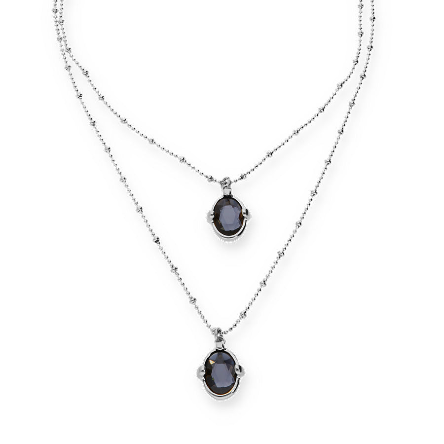 Regular price $403.00Double necklace of sterling silver plated alloy with 2 small dk grey faceted crystals. A dazzling design that is the perfect combination of power and elegance.