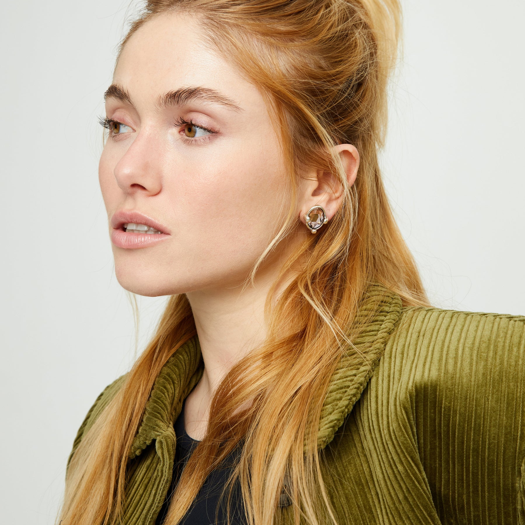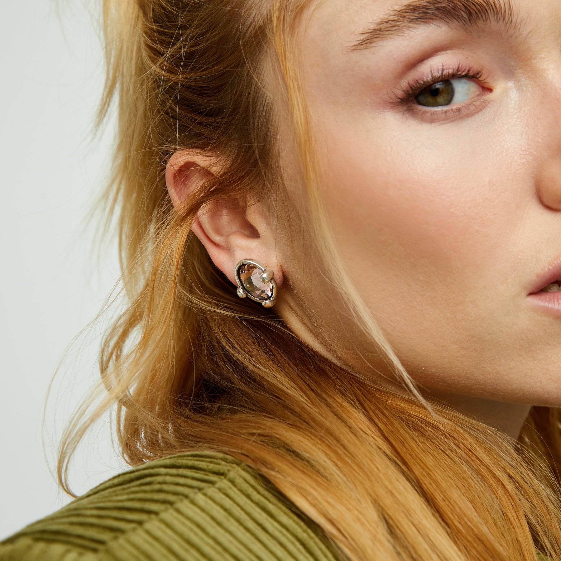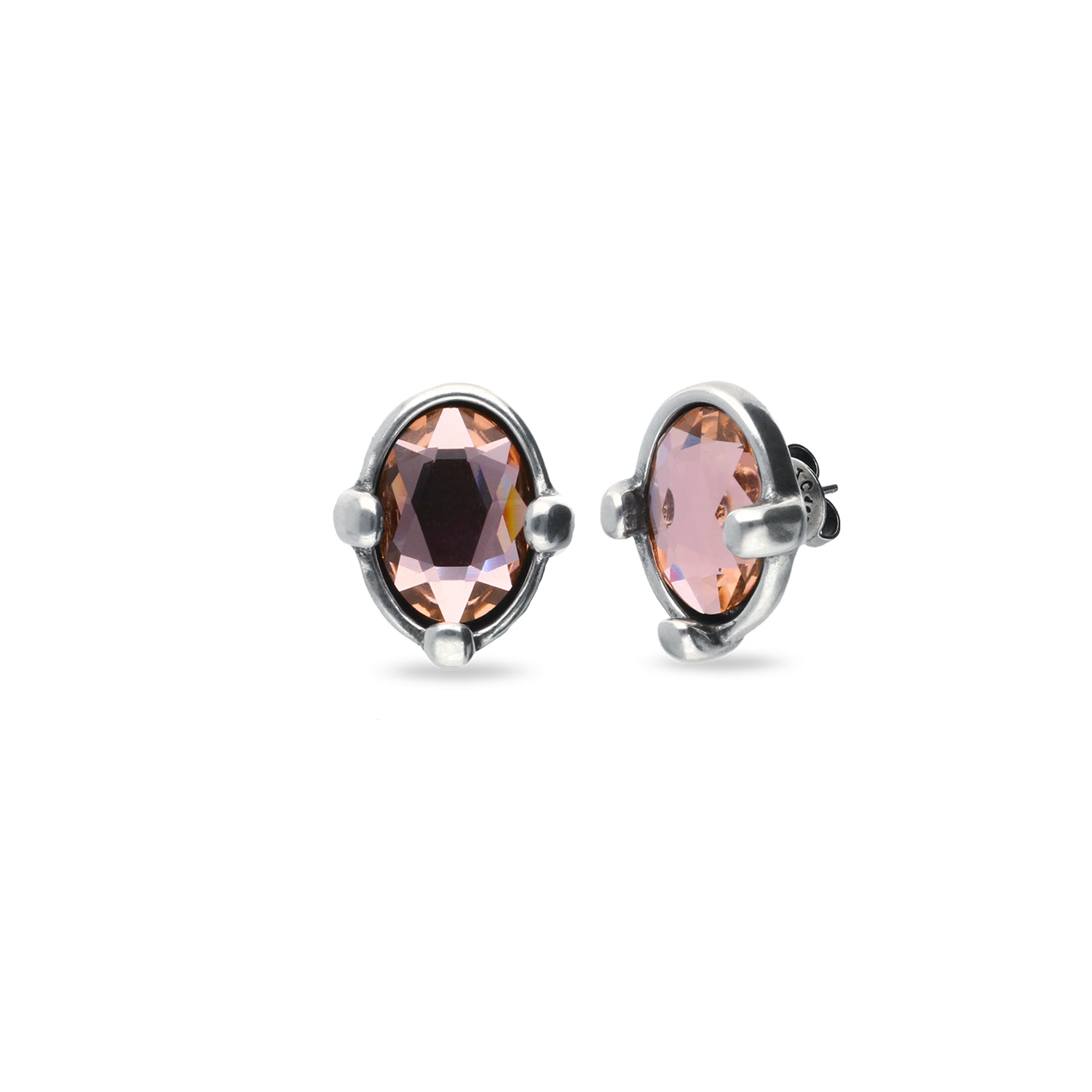 These earrings feature sterling silver plated alloy adorned with sparkling pale pink faceted oval crystals. Their striking design effortlessly blends strength and sophistication, making them an ideal accessory to elevate any look.