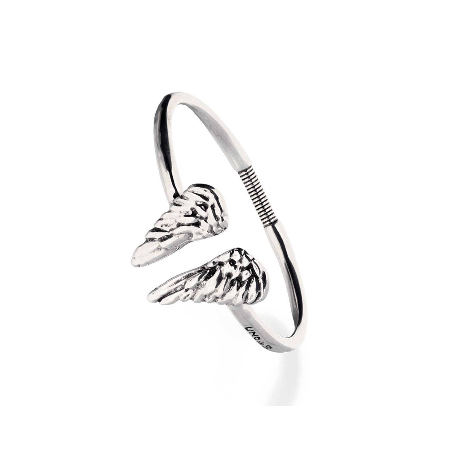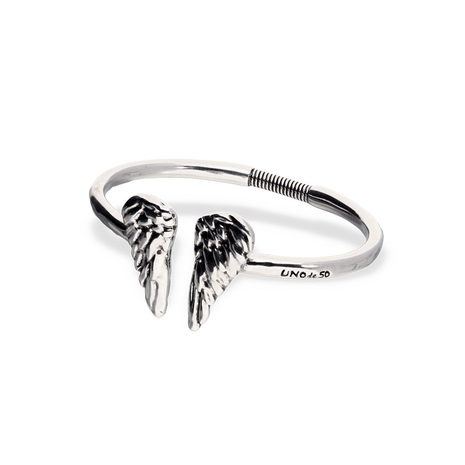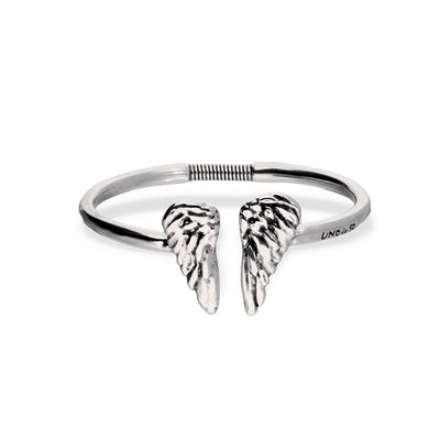 Regular price $282.00Rigid open bracelet with spring in alloy plated in sterling silver with wing detail. Celebrate your invincible side, show you have the power to overcome obstacles.