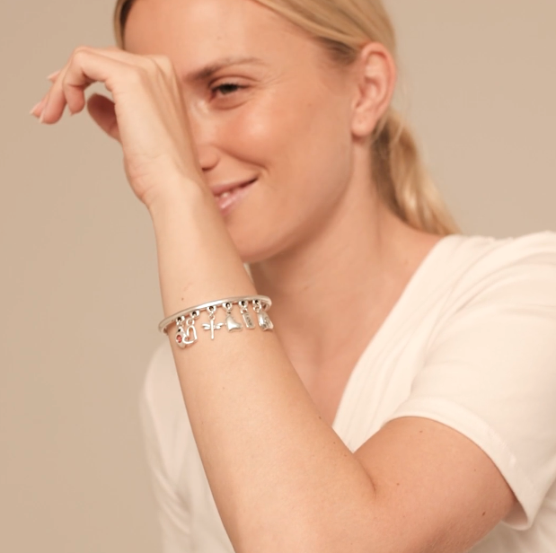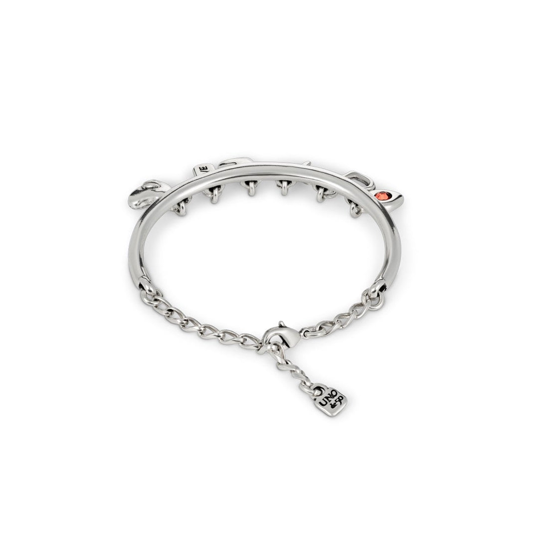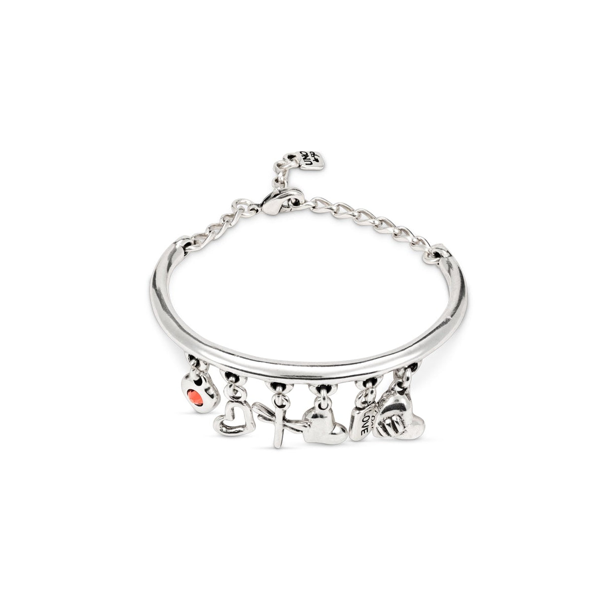 The Lovekeys bracelet design features six iconic charms: a pink crystal, hearts, a dragonfly and a love message. Carefully handcrafted in Spain from a silver-plated alloy, it features a rigid shaped tube, and a chain with a lobster clasp that allows you to adjust the bracelet to the desired size. Wear this one-of-a-kind bracelet and you’re sure to turn heads.